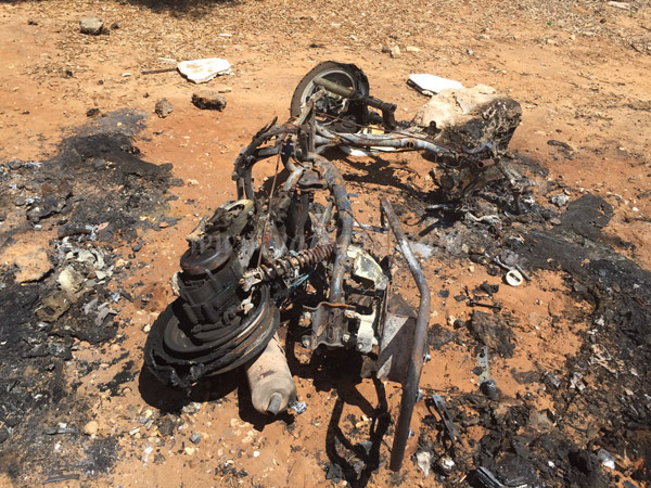 وقالت الشرطة التي وصلت الى مكان الحادث أن الحريق متعمد وتم سكب مادة مشتعلة على الدراجتين واضرام النيران فيها.