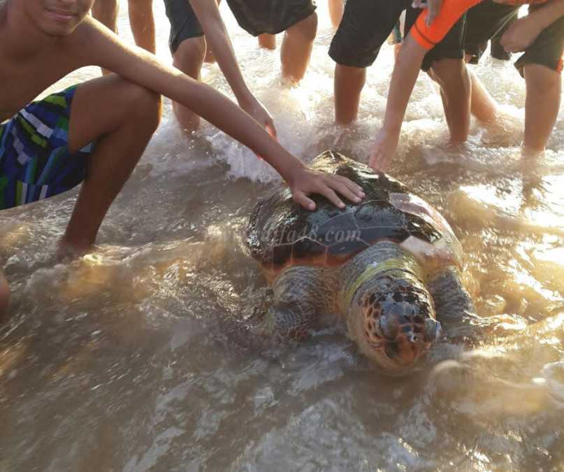 وصل موقع يافا 48 مجموعة من الصور التقطها المستجمون لسلحفاة بحرية ضخمة لفظها البحر على شاطئ بحر العجمي بمدينة يافا، حيث قام المنقذون على الشاطئ باخراج السلحفاة وعرضها أمام المواطنين الذين تعجبوا من حجمها ووزنها.