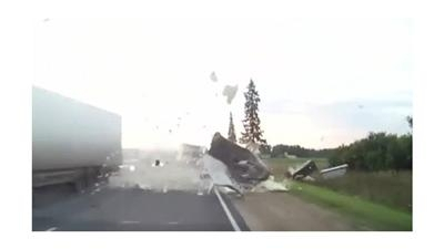 نجا اثنان من قائدي الدراجات الهوائية في روسيا من موت محقق, بعدما اصطدمت شاحنتان كبيرتان ببعضهما بفارق سنتيمترات عن الدراجتين.
