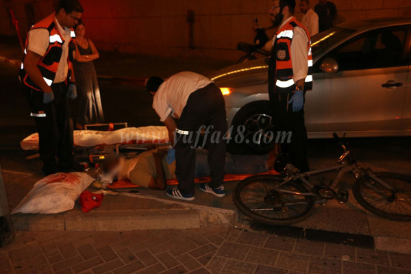 بالصور: إصابة متوسطة لراكب دراجة هوائية بحادث دهس شمال مدينة يافا