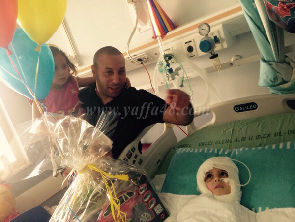 بالصور: عائة شقرة من يافا تزور الطفل أحمد دوابشة في مستشفى تل هشومير