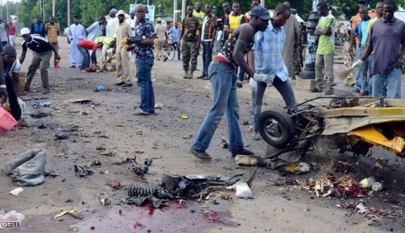 قتل 80 شخصا على الأقل وأصيب 150 آخرون بجروح في موجة هجمات ضربت ولاية بورنو بشمال شرق نيجيريا الأحد، حسب ما قالت مصادر في الشرطة، الاثنين. وأشارت المصادر إلى سقوط أكثر من 54 قتيلا و90 جريحا من جراء ثلاثة انفجارات بقنابل في مايدوغوري عاصمة الولاية، التي تعد مهد حركة "بوكو حرام" المتشددة.