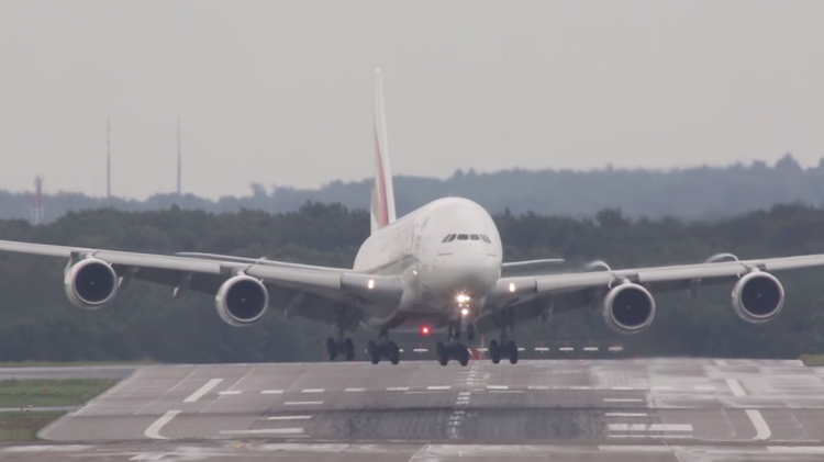 شهد الركاب القادمون والمغادرون في مطار دوسلدورف ظاهرة موترة لأعصابهم حيث هبطت أكبر طائرة للركاب في العالم " إيرباص آ 380 " في ظروف الطقس السيء جدا بسبب هبوب رياح جانبية قوية.