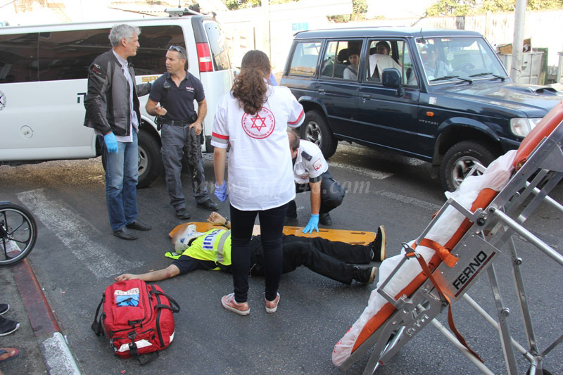 بالصور: إصابة طفيفة لراكب دراجة نارية بحادث طرق ذاتي بيافا