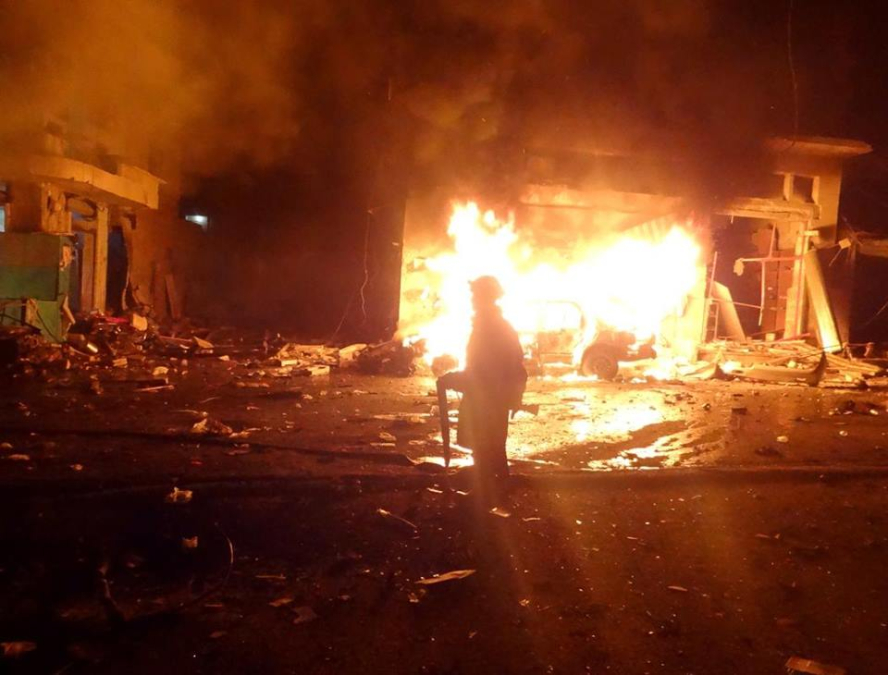 وذكر مسؤولون في الدفاع المدني بالمدينة، أنَّ الانفجار وقع في سوق شعبي وتسبب إلى جانب القتلى والجرحى، بأضرار كبيرة في الممتلكات، واندلاع حرائق في منطقة الانفجار.