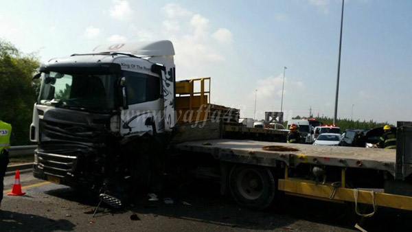 علم موقع يافا 48 أن حادث طرق متسلسل بين 3 شاحنات و5 مركبات وقع عصر امس الجمعة في شارع رقم 6 في مفرق بين شيمن قرب مدينة اللد، حيث اسفر الحادث عن اصابة 4 أشخاص منهم اثنين وصفت اصابتهم بالخطيرة واصابتين بالمتوسطة.