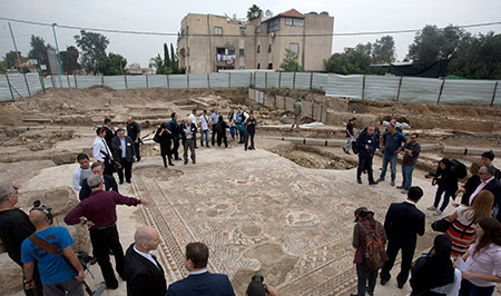 بالصور : الكشف عن مساحة فسيفساء أثرية باللد