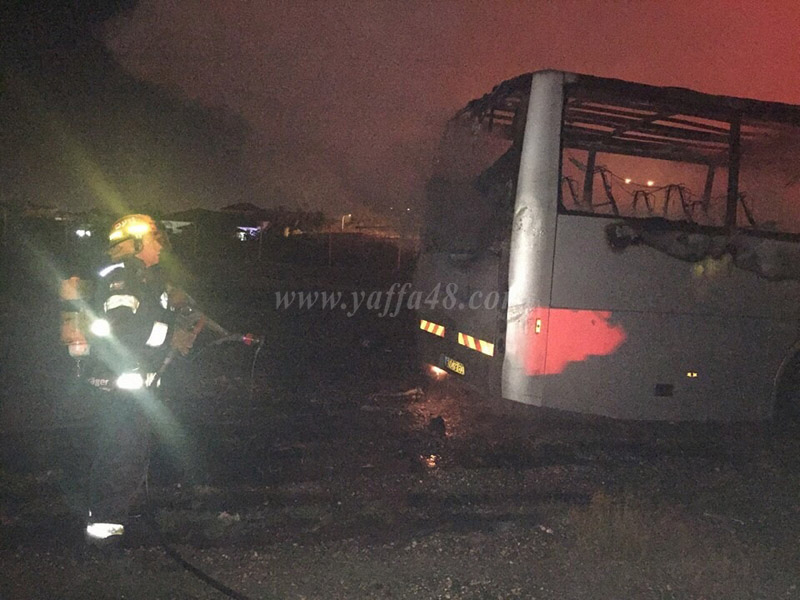 بالصور: منتصف الليل - احتراق شاحنتين وحافلة في مدينة اللد والشرطة تحقق