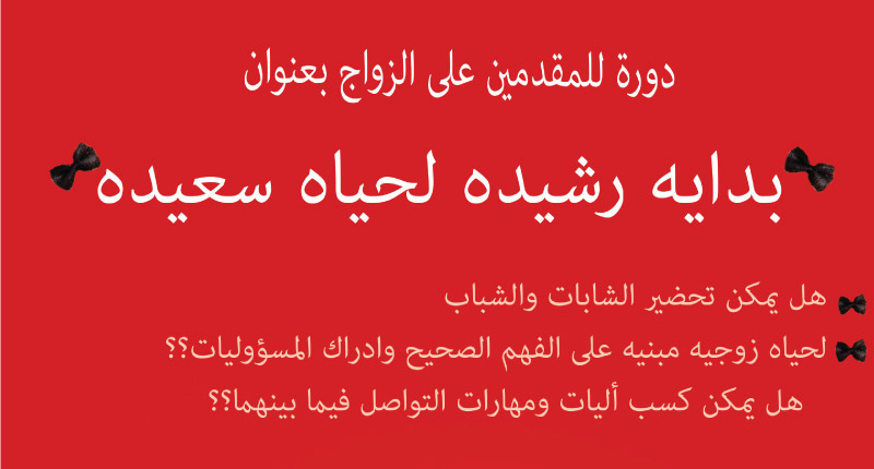 لا زال التسجيل لدورة الحياة الزوجية التي تحمل عنوان "بداية رشيدة لحياة سعيدة" مستمراً في المركز الجماهيري العربي اليهودي في مدينة يافا، حيث صرّح رئيس اللجنة التوجيهية للتوعية الاسرية القاضي محمد رشيد زبدة بأن التسجيل للدورة والتي ستُقام على مدار 3 أشهر أيام الاثنين من كل أسبوع بين الساعات 19:00 و21:00 في المركز الجماهيري قد وصل إلى مراحله الأخيرة وباتت الأماكن المتبقية محدودة".