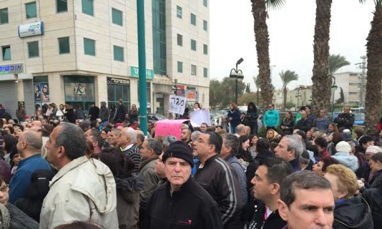 تظاهرة لعمال "ميغا" أمام مبنى محكمة العمل في اللد