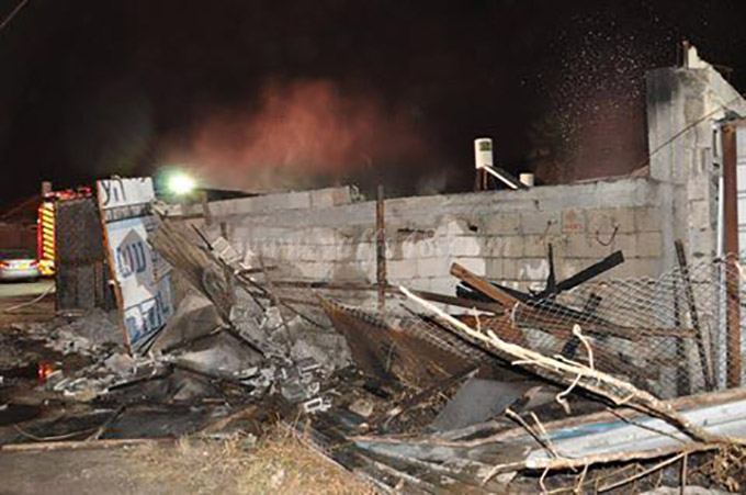 بالصور: حريق كبير يتسبب بانهيار اجزاء من مبنى في مدينة الرملة