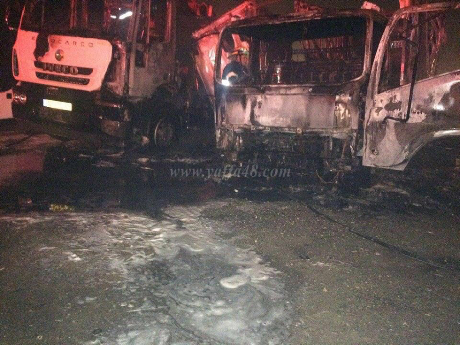 أفاد مراسل موقع يافا 48 أن حريقاً اندلع مساء اليوم الجمعة في شاحنتين وحافلة مركونة في حي جني افيف بمدينة اللد، وقال مراسلنا أن الحريق اندلع في بدايته في الشاحنتين وامتد ليصل إلى حافلة مركونة بالقرب منها، ولم يتسبب بوقوع اصابات في الارواح إلا أن اضراراً مادية جسيمة لحقت بالشاحنات.