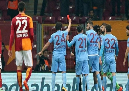 شهدت مباراة في الدوري التركي بين غلطة سراي وطرابزون سبور أحداثا مثيرة، بعد أن قام الحكم بطرد 4 لاعبين، من بينهم لاعب أشهر البطاقة الحمراء في وجهه اعتراضا على قراراته.
