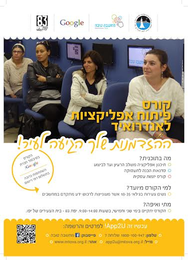جمعية عروس البحر بالتعاون مع مركز الشباب في يافا - ييفت 83" وجمعية "מחשבה טובה" تفتح باب التسجيل لدورة تصميم تطبيقات אפליקציות للهواتف الخلوية واجهزة الاندرويد.