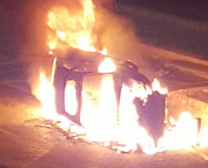 بالفيديو: فجر اليوم - احتراق مركبة بعد انقلابها في شاطئ الريف بيافا