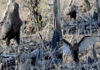فيديو: مواجهة شرسة بين نسر جائع وكوبرا