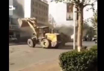 شاهد: عراك بالجرافات الثقيلة بالشارع العام