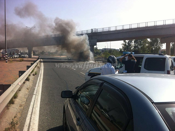 بالصور: احتراق مركبة في مدخل اللد الشمالي دون وقوع اصابات