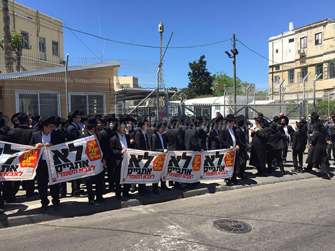 نظم جمع من اليهود الخارديم ظهر اليوم الخميس تظاهرة أمام المحكمة العسكرية الواقعة في شارع شيفتي يسرائيل بمدينة يافا، وذلك للتعبير عن رفضهم لسياسة التجنيد الاجباري في الجيش الاسرائيلي، حيث يرفض الخارديم الانخراط في صفوف الجيش لدوافع دينية.