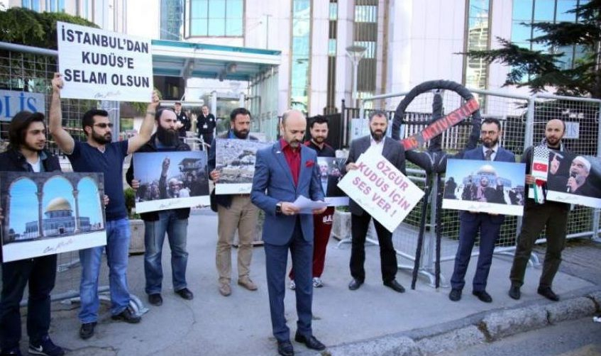 وقفة احتجاجية أمام القنصلية الاسرائيلية في اسطنبول تنديداً بسجن الشيخ رائد صلاح
