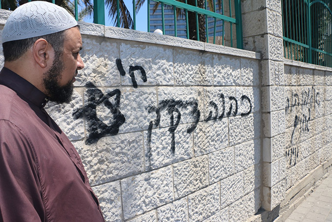 لماذا لا تضع شرطة الاحتلال الكاميرات حول المسجد لتصل الي الفاعلين .بامكانكم انتم يا حماة الاسلام وضع الكاميرات ليس فقط علی باب المسجد بل حواليه لتصلوا الي قطعان المستوطنين . والله معكم.