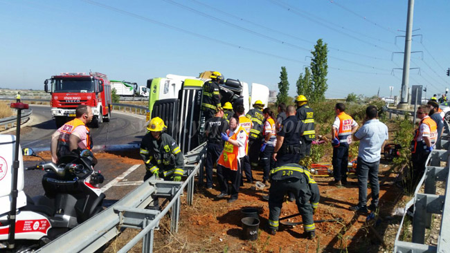 من جانبه، قال كايد ظاهر الناطق والمركز للاعلام العربي في سلطة الاطفاء والانقاذ " ان طواقم الانقاذ من منقطة " ريشون لتسيون " علمت على تخليص سائق الشاحنة " .