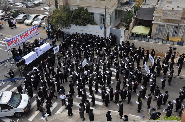 كما وتأتي هذه التظاهرة احتجاجاً على قرار المحكمة العسكرية بسجن أحد الخارديم الذي رفض التجنيد الاجباري والخدمة في الجيش الاسرائيلي، حيث تم اغلاق شارع شيفتي يسرائيل أمام حركة المواطنين وسط تواجد مكثف لقوات الشرطة ووحدة مكافحة الشغب، وعلى ما يبدو أن الشرطة تستعد لتفريقهم بالقوة.