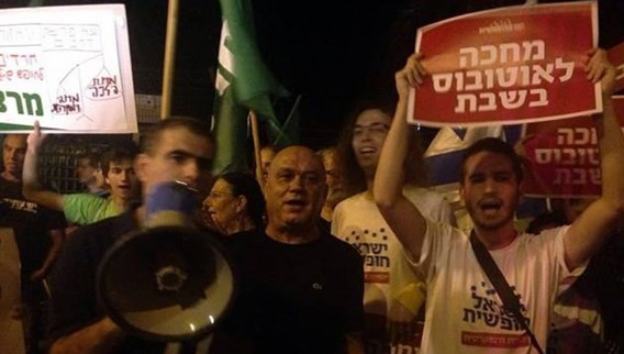 نظمت مساء السبت مظاهرة في تل ابيب ضد قرار رئيس الحكومة بنيامين نتنياهو بوقف اعمال القطارات ايام السبت.