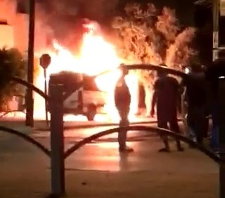 بالفيديو: احتراق مركبة في مدينة اللد دون وقوع اصابات