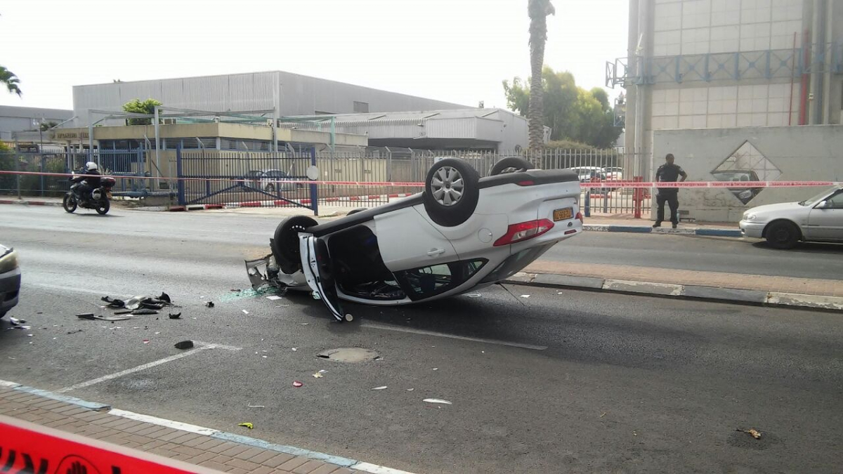 بالفيديو: انقلاب مركبة واصابة متوسطة لسائقها بحادث طرق ذاتي في اللد