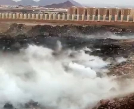 بالفيديو : دخان يخرج من تحت الأرض قرب المطار بالمدينة المنورة !