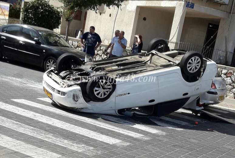 بالصور: اصابة 3 اشخاص بحادث طرق وانقلاب مركبة في مدينة يافا