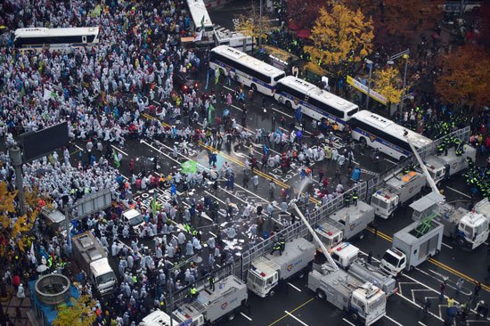 شارك الآلاف من الكوريين الجنوبيين بالعاصمة سول في مظاهرات كبيرة للمطالبة بتنحي الرئيسة بارك غيون هاي، وتوافدوا قرب مبنى البلدية وبوابة القصر القديم؛ وقدّر منظمو الاحتجاج وصول أعداد المشاركين لنحو مليون متظاهر.