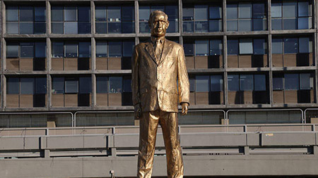 تمثال ذهبي لنتنياهو في ميدان رابين بتل ابيب !