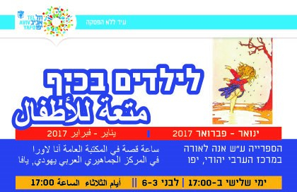 تدعوكم المكتبة العامة "انا لاورا" في المركز الجماهيري في مدينة يافا للمشاركة في فعاليات ساعة قصة وذلك أيام الثلاثاء من كل اسبوع في تمام الساعة الخامسة مساءً طيلة شهري يناير وفبراير.