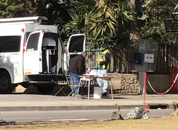 دائرة السير التابعة لوزارة المواصلات تنصب حاجزاً لفحص المركبات في يافا