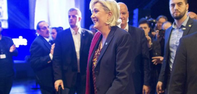 وتعطي استطلاعات الرأي تقدما لمرشحة أقصى اليمين في الدورة الأولى من انتخابات الرئاسة القادمة، وقد تتعزز فرصها في حال انسحب مرشح حزب الجمهوريين فرانسوا فيون جراء اتهامات الفساد الموجهة إليه.