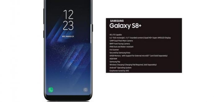 وتتماشى الصورة (المُجسَّمة حاسوبيا) مع تسريبات سابقة حقيقية لهاتفي غلاكسي أس8 وغلاكسي أس8+، وهي تُظهر هاتفا بشاشة منحنية على الجانبين وتحتل كامل المساحة الأمامية للجهاز، ويظهر في وسطها تاريخ 29 مارس/آذار، وهو الموعد الذي ضربته سامسونغ للصحفيين للكشف عن الهاتف.