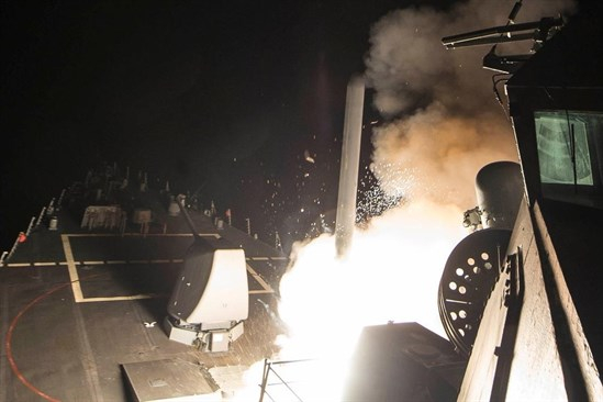 أطلق الجيش الأمريكي، فجر اليوم الجمعة، 59 صاروخا من طراز توماهوك من مدمرتين للبحرية الأمريكية على مطار الشعيرات العسكري (طياس)، جنوب شرق مدينة حمص، وسط سوريا.