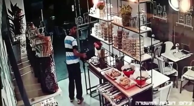 عممت المتحدثة باسم الشرطة لوبا السمري بياناً على وسائل الاعلام، جاء فيه " تناشد الشرطة عموم افراد الجمهور بالمساعدة في التوصل الى مشتبه لص قام مساء البارحة الاحد في سرقة حقيبة مواطن صاحب متجر من سكان مركز البلاد وذلك بمقهى في تل ابيب شارع موشيه سنيه احتوت اوراق هامه خاصة وجهاز حاسوب متنقل وغيرها".