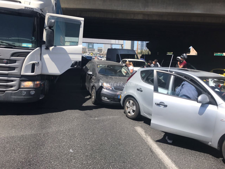 بالصور: اصابة شخصين بحادث طرق متسلسل شمال مدينة يافا
