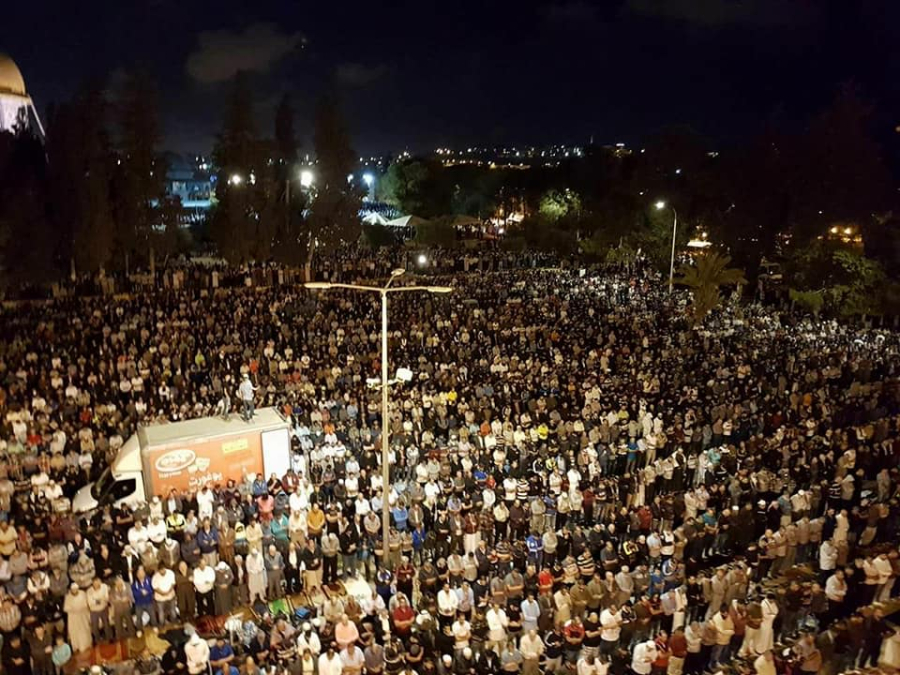 وافادت دائرة الاوقاف الأسلامية في القدس ان المصلين توافدوا إلى المسجد الأقصى المبارك حتى ساعات بعد منتصف الليل.