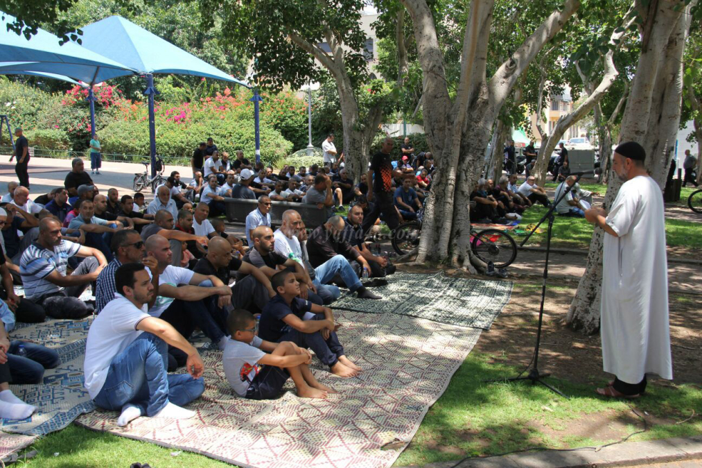 بالفيديو: صلاة جمعة حاشدة في حديقة العجمي بيافا اثر عرقلة انطلاق الحافلات للأقصى