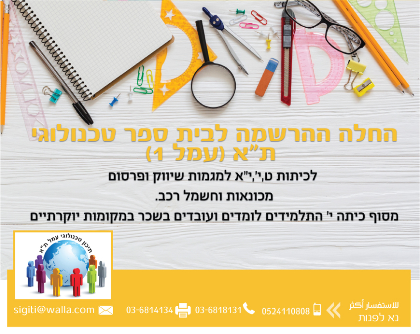 ما زال التسجيل مستمراً في مدرسة عمال "1 التكنولوجية، وبامكانكم الاستفسار والتسجيل على هاتف رقم: 0524110808