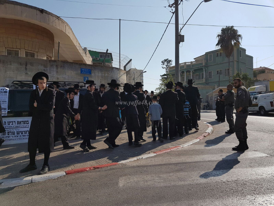 بالصور: تظاهرة للمتدينين اليهود أمام المحكمة العسكرية في مدينة يافا رفضاً للتجنيد