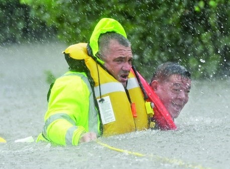 ووجهت أجهزة الطوارئ في عاصمة الصناعة النفطية الأمريكية صباح ، الأحد، رسالة واضحة جدا مفادها "على الأشخاص الفارين من الفيضانات الصعود إلى أسطح المنازل في حال اصبحت الطوابق الأعلى في المنزل خطرة". وأضافت "اتصلوا برقم الطوارئ 911 للحصول على مساعدة".