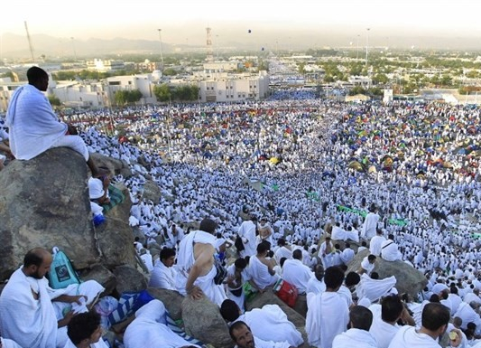 توافدت الجموع الأولى لحجاج بيت الله على صعيد عرفات لأداء الركن الأعظم في الحج، اليوم الخميس، حيث ينتظر أن يقضي أكثر من مليوني حاج يومهم إلى غروب الشمس في عرفات قبيل النفير إلى مزدلفة.