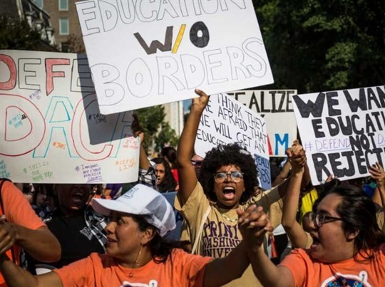 اندلعت احتجاجات في العديد من المدن الكبرى، في أنحاء الولايات المتحدة، الثلاثاء، بعد أن أعلنت الحكومة عن خطط لإنهاء برنامج يسمح للمهاجرين الصغار، الذين دخلوا البلاد أطفالا بشكل غير قانوني بالبقاء في الولايات المتحدة، الأمر الذي يهدد مصير مئات الآلاف من المهاجرين.