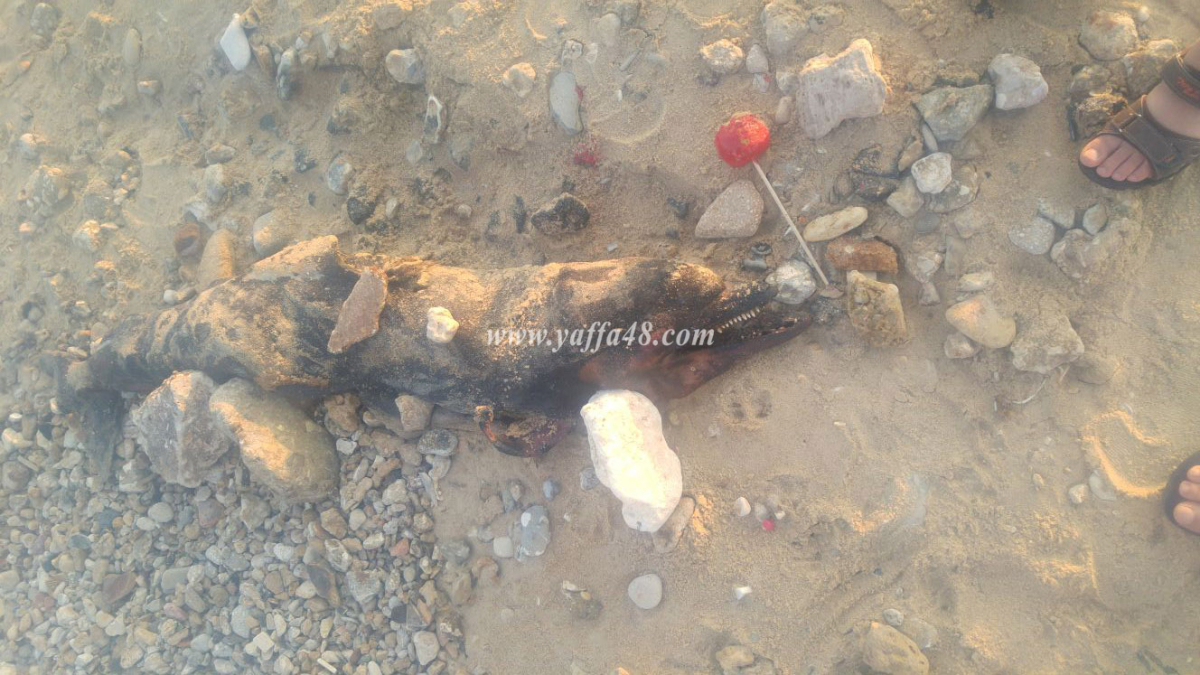 صور: البحر يقذف جثة دولفين على شاطئ العجمي بمدينة يافا