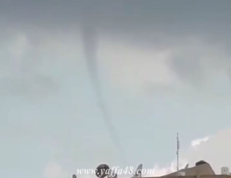 التقطت عدسات بعض المواطنين في مدينة يافا صباح اليوم الأربعاء تشكل إعصار "تورنادو" قمعي صغير فوق المدينة، حيث شوهد بشكل واضح وكأنه عامود يمتد من السماء ليصل الأرض، كما والتقط احد المواطنين اعصار صغير في حي العجمي بالمدينة صباح اليوم.